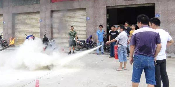 通過李組長的細(xì)致解說,在場大致了解。再請辦公室員工和產(chǎn)線員工各2名實操,通過王組長的輔導(dǎo),4名員工正確使用滅火器。