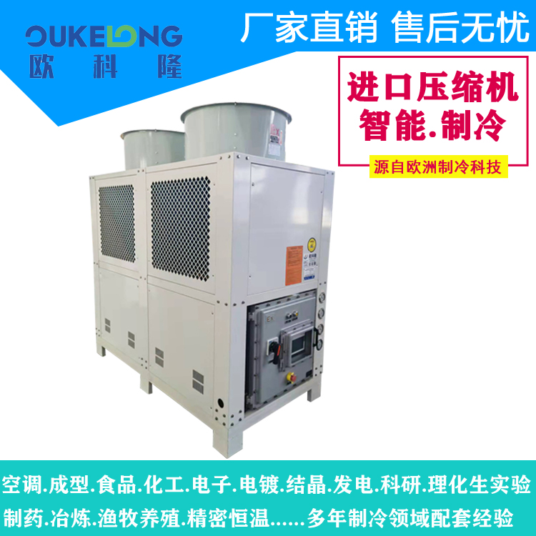風(fēng)冷箱式防爆冷水機,是歐科隆制冷打開市場的拳頭產(chǎn)品,歐科隆制冷擁有廣泛的防爆冷水機配套經(jīng)營,包括臭氧發(fā)生器,甲烷發(fā)電,化工化纖,石油天然氣,新型環(huán)保行業(yè)等,歐科隆防爆冷水機采用隔爆、增安、本安、正壓、充油、充砂、無火花、澆封和氣密等多種防爆方式,使機組可以在易燃易爆場合使用。