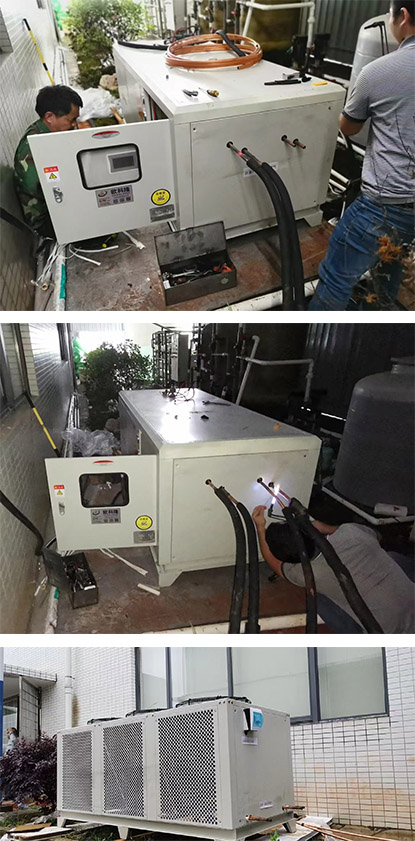 本方案為國(guó)內(nèi)某高校實(shí)驗(yàn)室使用的分體式冷水機(jī),為了便于散熱,內(nèi)外機(jī)分開(kāi)放置。我方工程團(tuán)隊(duì)上門安裝調(diào)試,后續(xù)使用過(guò)程順暢得到該科研師生團(tuán)隊(duì)一致好評(píng)。
